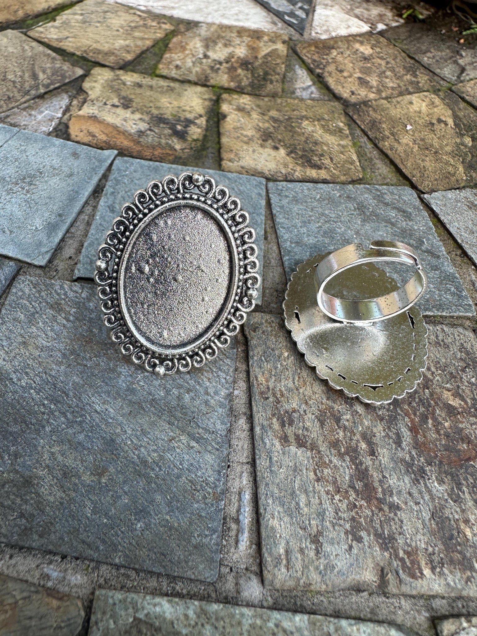 Antique Antique Silver Oval Ring Blanks 18mm x 25mm