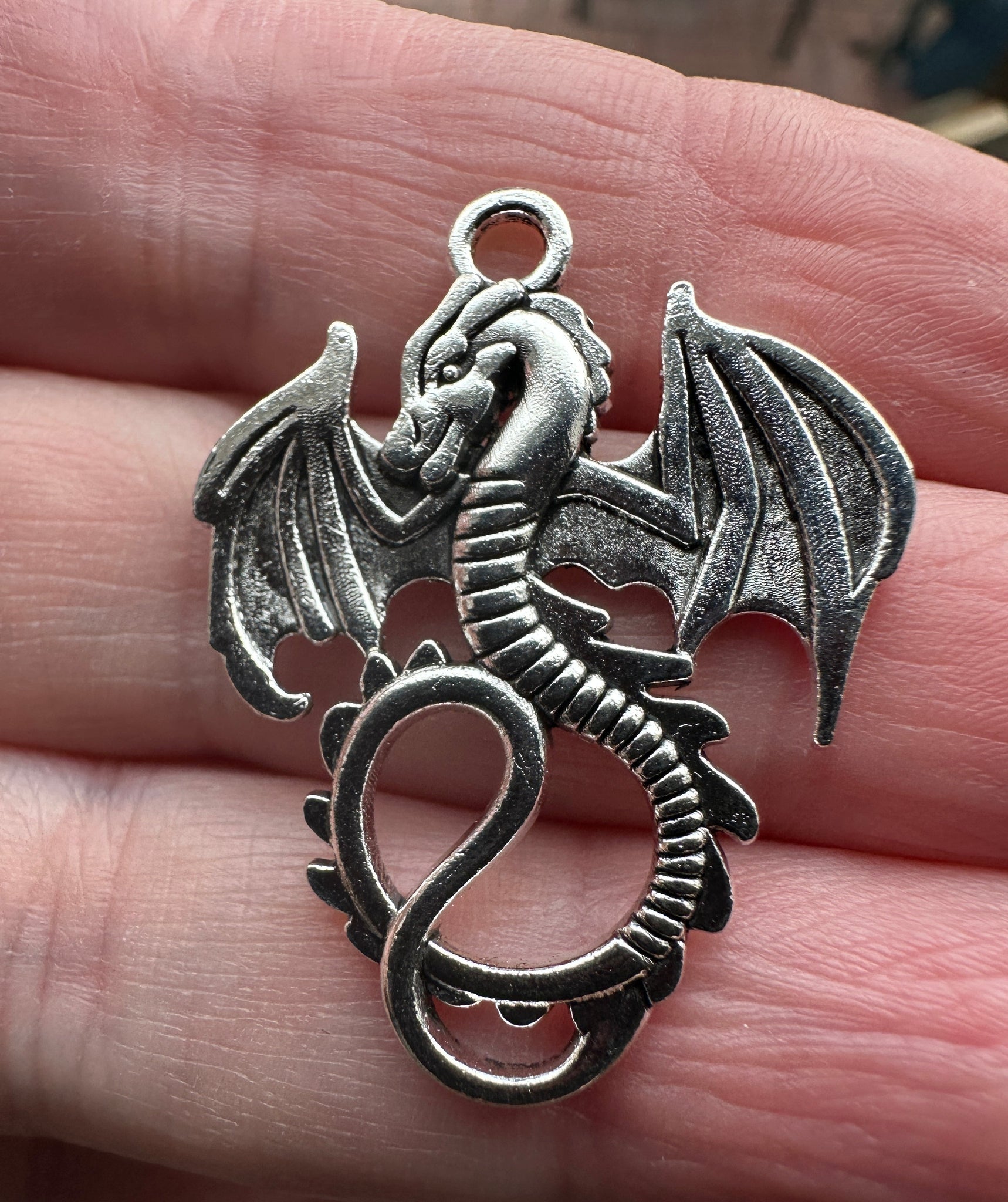Large Silver Dragon Charms