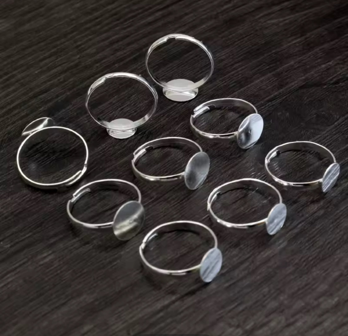 Silver Plated Adjustable Ring Pad Blanks 8mm and 10mm