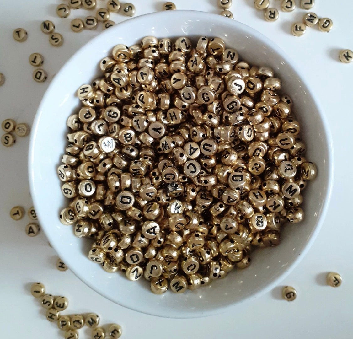 Acrylic Gold Colour Alphabet Letter Beads 7mm Clearance