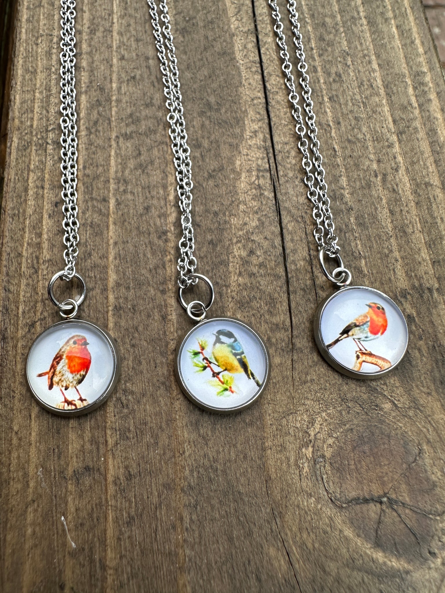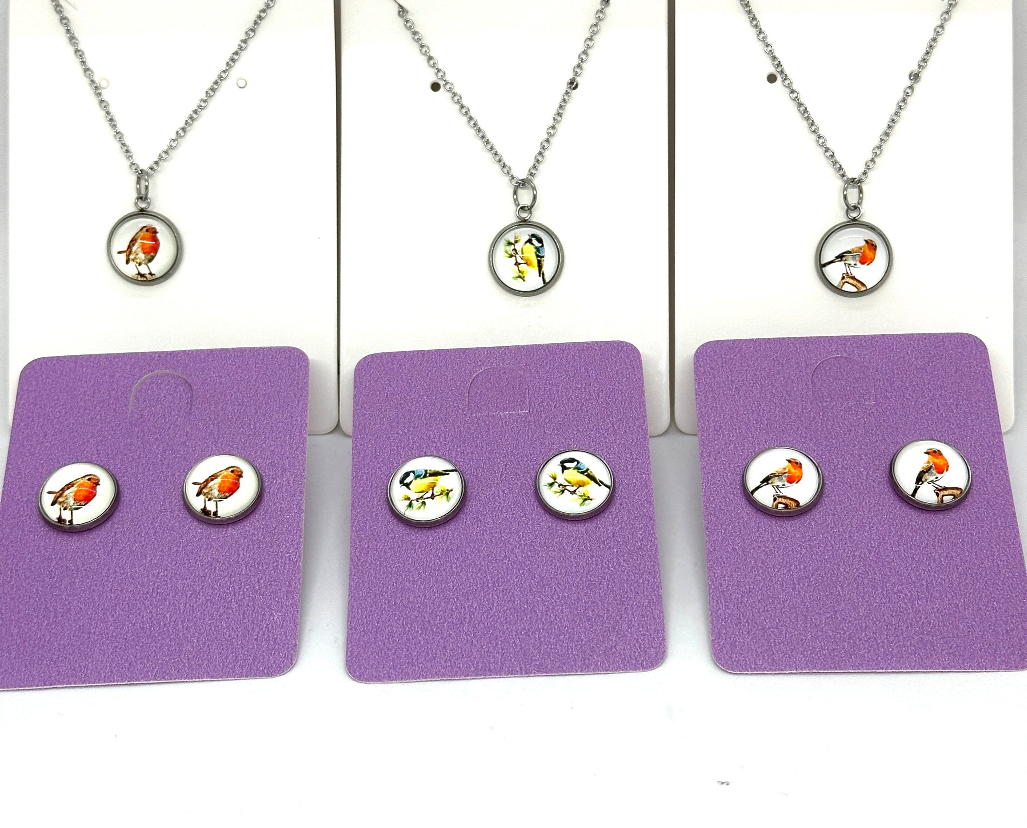 Stainless Steel Robin & Blue Tit Earrings and Necklace Set – Hypoallergenic, Anti-Tarnish Bird Jewellery, Gift for Nature Lovers