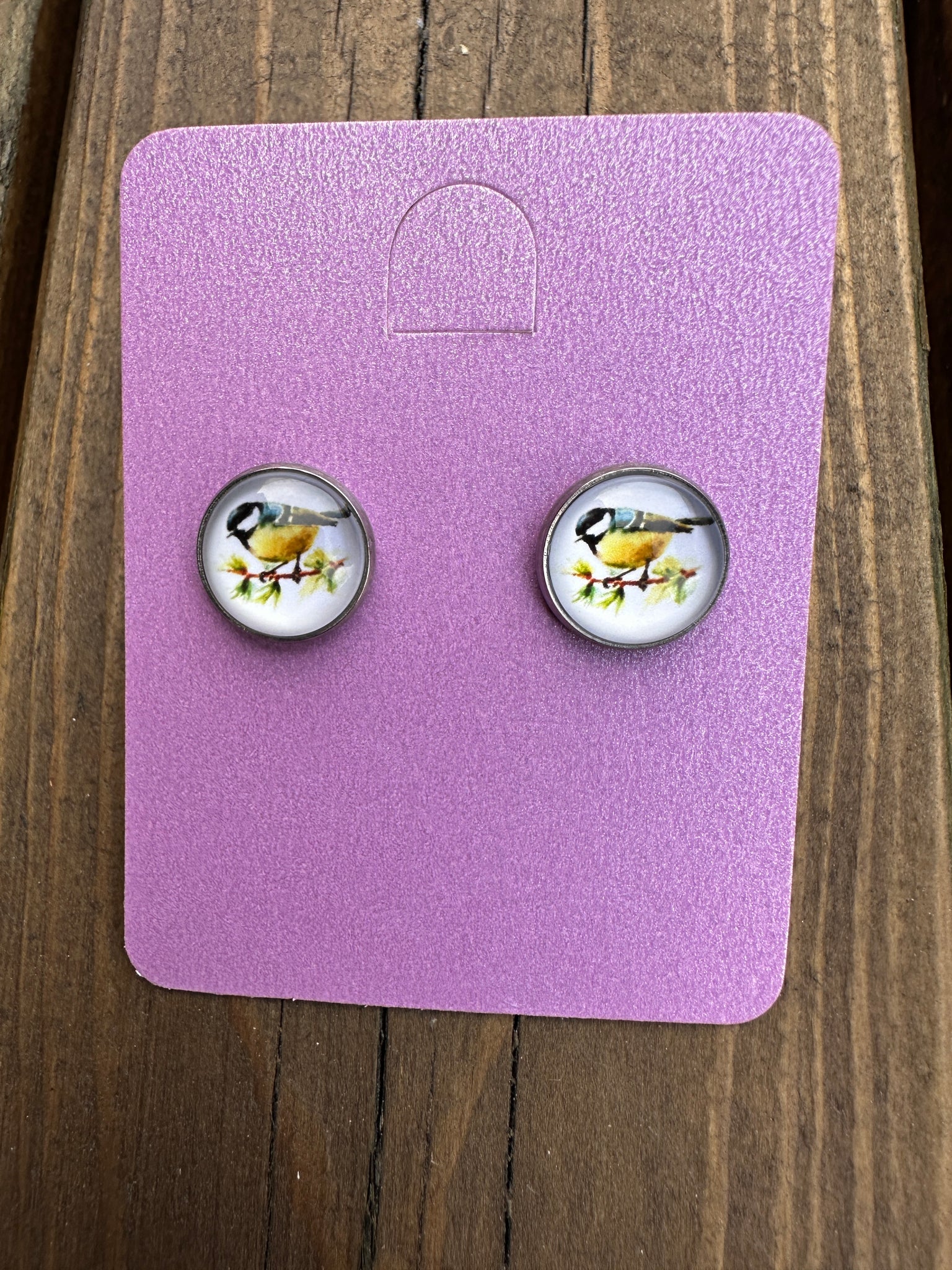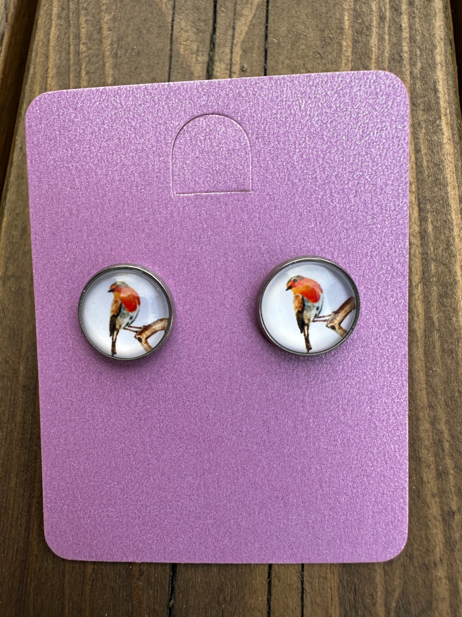 The 12mm glass cabochons showcase beautiful bird artwork protected by a clear glass dome that enhances the vibrant colours and details.